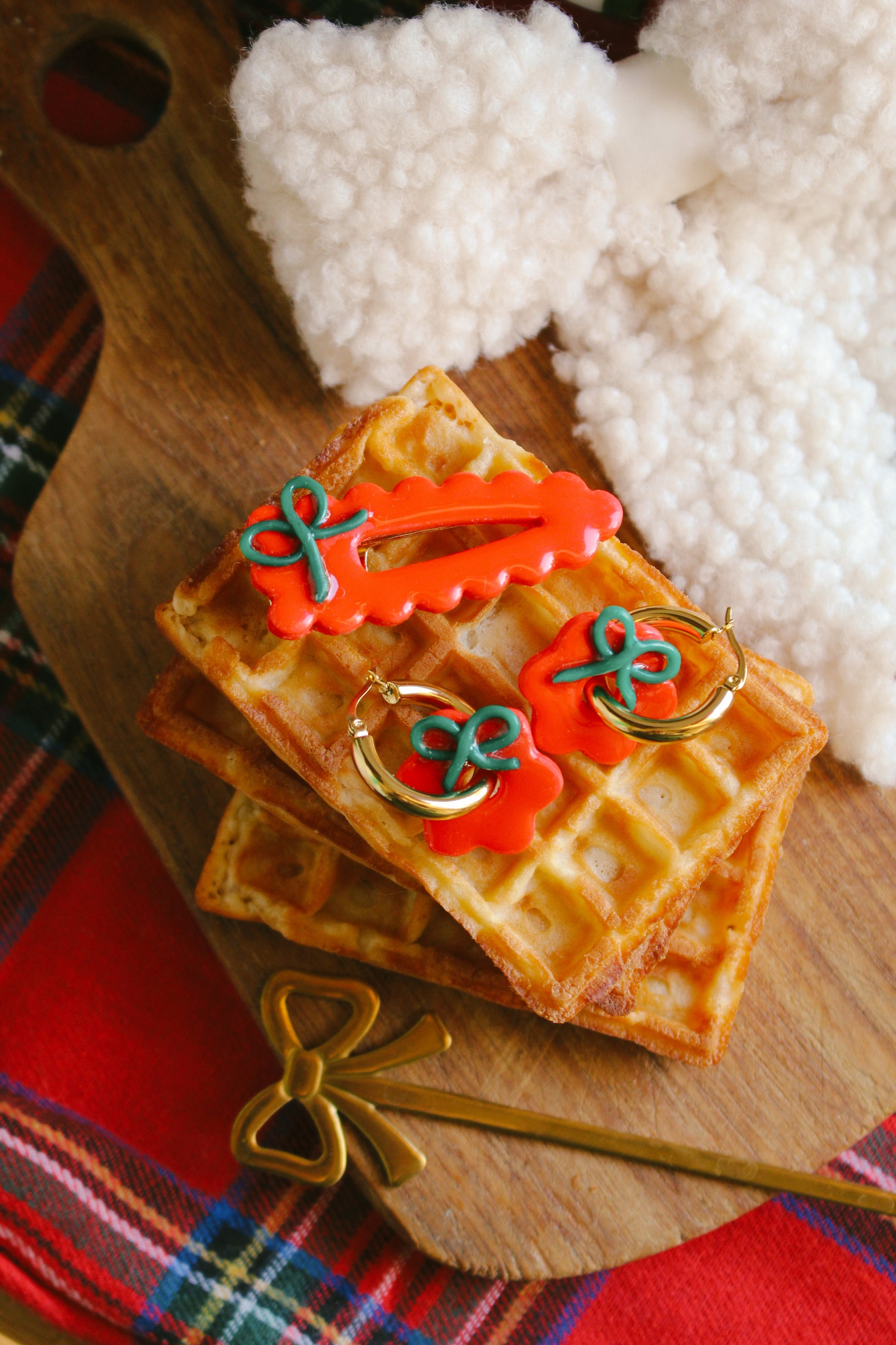 Duo barrette - boucles d'oreilles rouge noeud vert